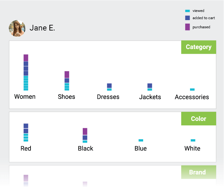 - Replays previous product, at brand and category level, customer was looking at previously and provides pathway to continue browsing