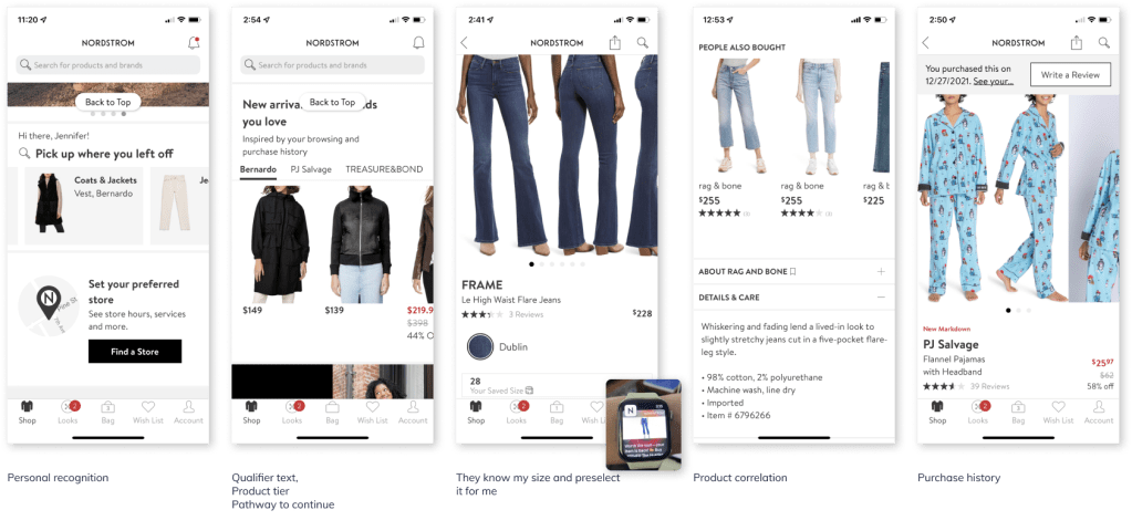 - Nordstrom was the only retailer with a variety of customer/user-centric labels across different products; simultaneously personalizing and providing product suggestions